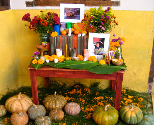 The building of the alter was a messy event at our house. Maybe all Mexican mothers performing such tasks with kids under foot experience water spills, broken glass, fighting siblings, cries of pain from experimentation with candle wax and pine needle distribution throughout the house. Maybe that’s just part of it. I like to think those who’ve passed enjoy watching and laughing at the process.