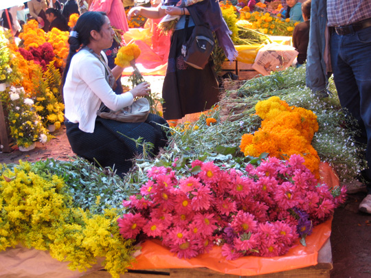 Anyway, by the time I had gotten over myself and looked around me, the whole town was infused with excitement in preparation for Dia de los Muertos. We wandered the markets slowly, taking in the festive charm and collecting bits and pieces for our alter…