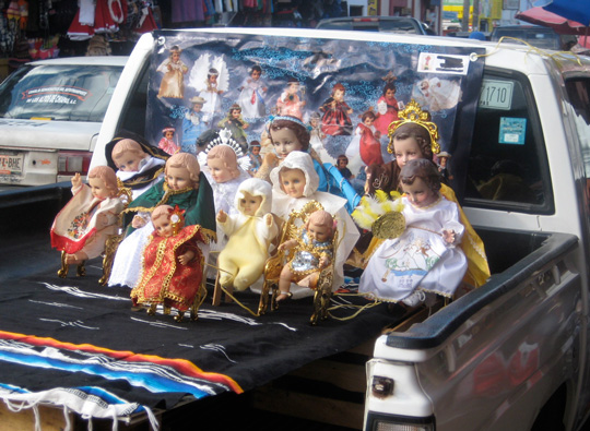 Sweet like a family of plastic baby Jesuses in the back of a pickup truck.