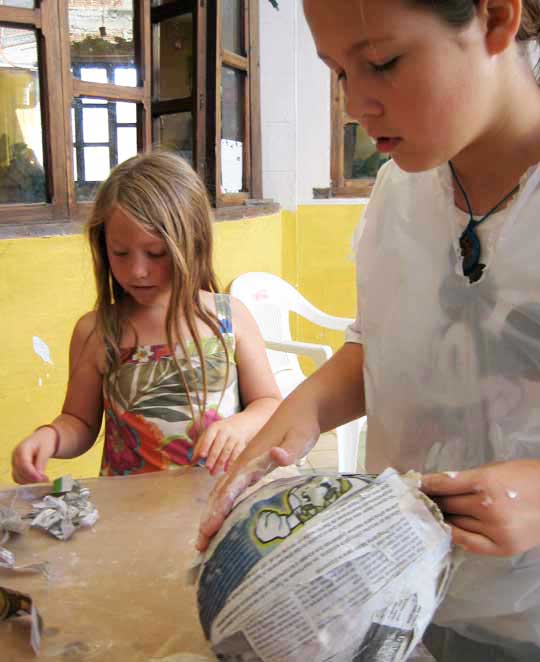 It is with a sigh of relief, dry and prune-like hands (I did help, in the end) and many thanks to Taos that I can now check piñata-making off the list of family memory makers and try again next year for that ever-elusive goal of simplicity.