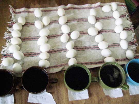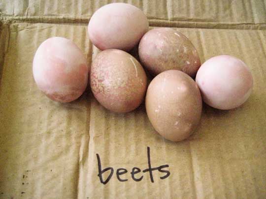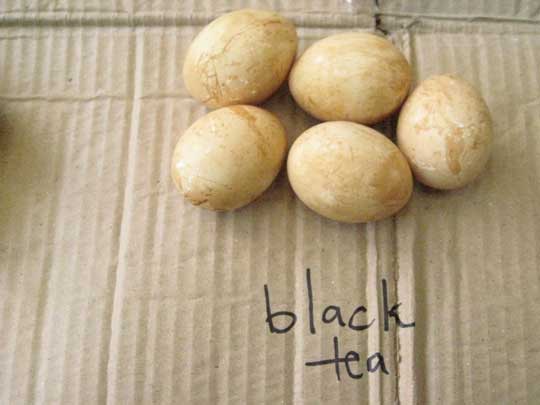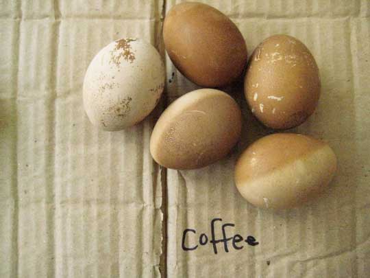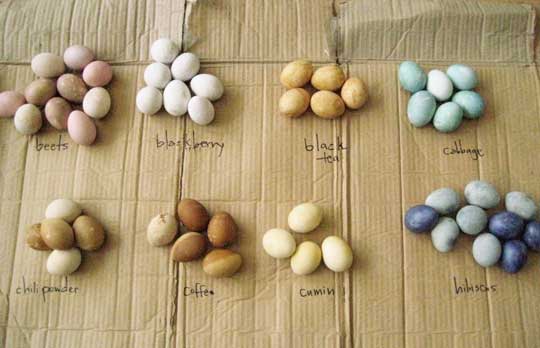 ONION SKINS. Traditional egg dye of eastern europe. Give beautiful golden orangey brown color, strong and uniform. Gotta boil onion skins, just the dry orange ones in water, many of them, kinda thick. Put eggs into the boiling liquid for not too long. i suppose you can put raw eggs in for longer just cook them in it til they are hard boild but then they may be too dark. To decorate: scratch designs on the shell with sharp object.