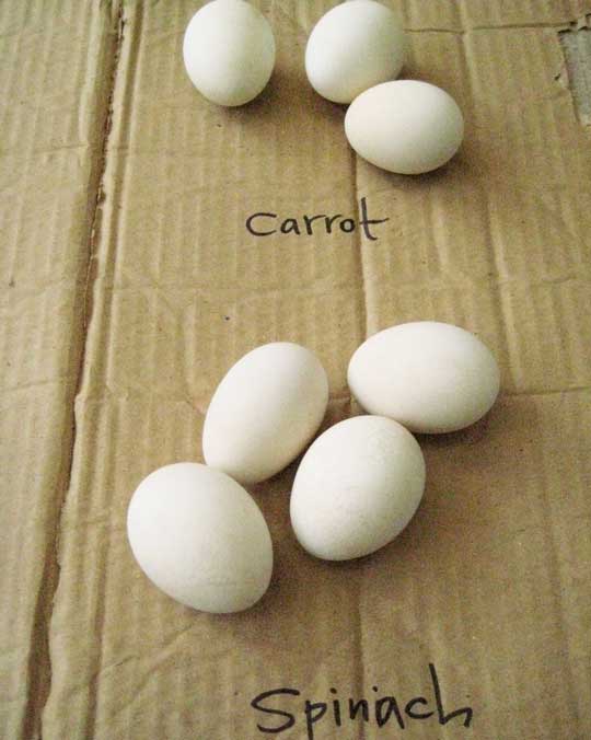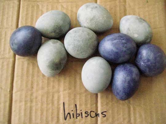 Okay, so I’m a total dork (as is apparently evident anytime natural foods meet science meets practical family project) but it really was fascinating! Who’d have thought that hibiscus flowers would leave a royal purple stain after 10 minutes, but a muted, matte gray when left overnight? Who’d have guessed that the deepest green spinach or freshly unearthed carrots would prove about worthless as egg dye?
