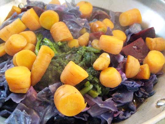 So my pleasure was all the greater when – enticed back to the kitchen by the aromatic coupling of root vegetables and savory spices – they were begging for a bowl, apologizing for their crude critiques and singing my praises for their dinner of Easter Egg Dye Soup. I may be a total dork, but my kids are growing up to appreciate the wonders of natural foods, and that’s one compromise I’m willing to make.
