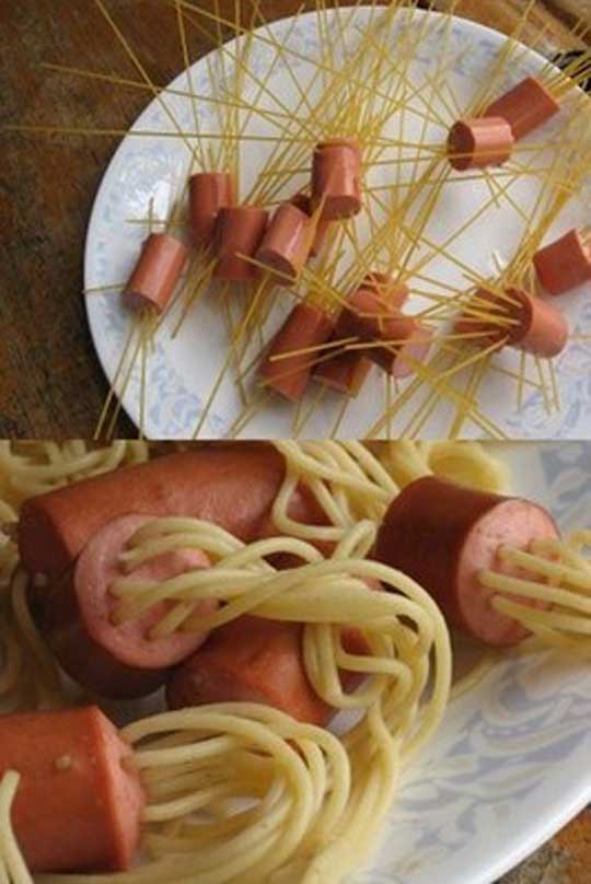 And most importantly, only you can decide whether you could have lived without knowing that this can be done with noodles and wieners…