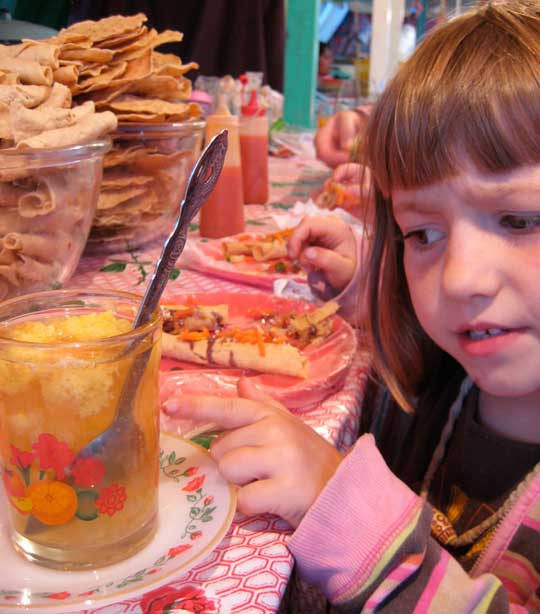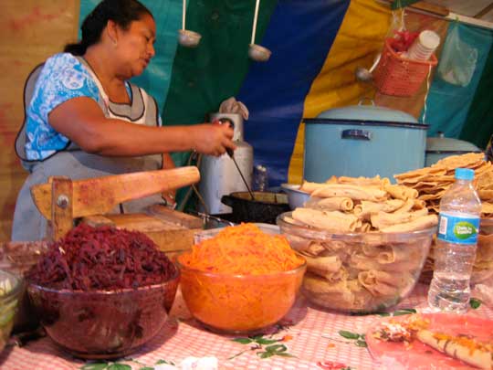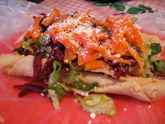 We opted for taquitos and empanadas at one of the many family-run food booths. Our señora made the tortillas fresh, filled them, fried them, then covered them with beans, veggies and sharp, crumbled cheese. SO good.