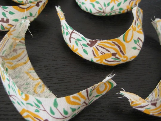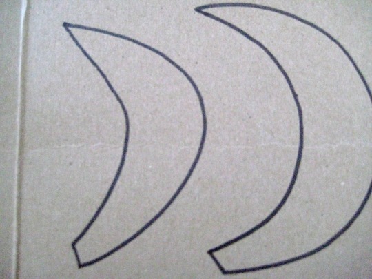 Cut a banana shape out of an old cereal box (or any paperboard), with one end pointed and the other flat. The patterns I drew ranged from three to five inches tall. *Note — The shape ABOVE yields a rounder, less segmented-looking pumpkin. The ones BELOW will be more squatty, with distinct grooves. It’s all about the depth of the bend.