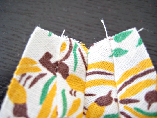 Keeping right sides together and using the edge of your presser foot to gauge the seam allowance, sew along the outside edge of each pair, backstitching at both ends.