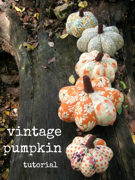 As happy as I am to have noticed autumn here, I’ve still got this thing for pumpkins. Last year we found winter squash to be a lovely substitute. This year, while still on the hunt for something suitable with which to make pie, I decided to combine two of my favorites things — pumpkins and vintage fabric — into a seasonal offering of my own.