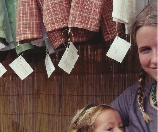 My clothing line, Green Beings. I made kid’s clothes and nursing wear from organic cotton, hemp and linen, finishing them with hand-embroidery. Hunter made the buttons from deer antlers, and yes, we ate a ton of venison.