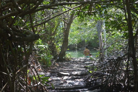 Our picnic spot offered both shade and fresh coconuts, the treasure hunting was endless and fruitful, and though the beach was too rough for swimming, a two-minute tunnel though a magnificent mess of mangrove took care of that.